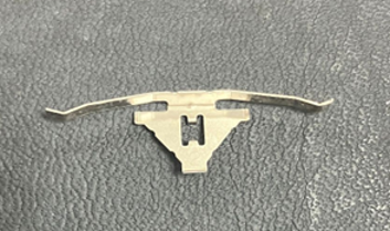 高難度加工 電池端子 医療系の電子測定器に内蔵される精密部品なので、平面度の保証する必要がありました。 用途 血糖値計 材料 SUS304 板厚 0.15mm~0.2mm プレス機 60tプレス ご要望 平面度やバリの基準を満たして欲しい 難しかったこと 大量にプレス加工する製品の平面度をどのように保証するか。 課題解決 工程検査の頻度を増やし、材料起因の平面度変化にも対応できるようにしました。
